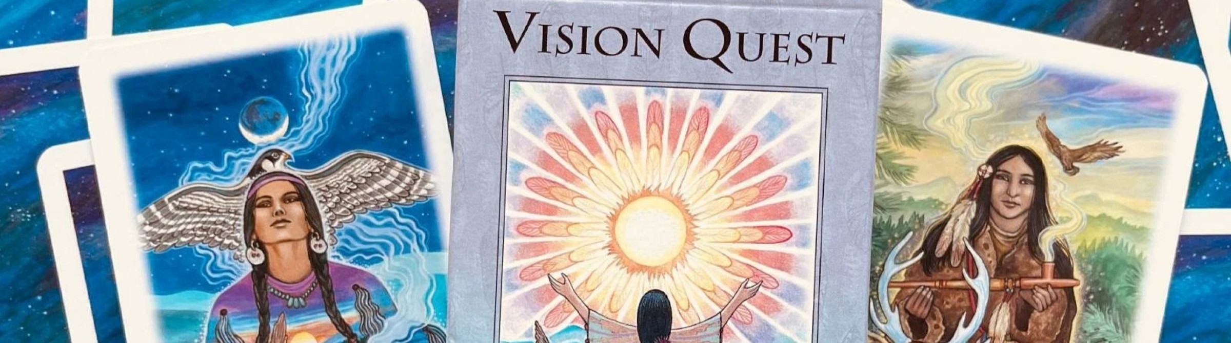 El Tarot Vision Quest es un mazo diseñado como herramienta de búsqueda personal y autoconocimiento, inspirado en las tradiciones de los pueblos originarios de América del Norte. Cada carta invita al consultante a explorar su camino vital y la conexión con el mundo natural y espiritual.